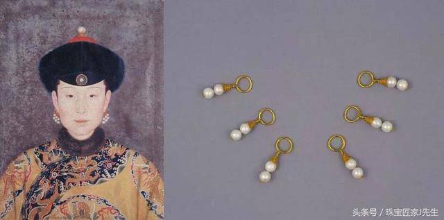 皇太后与皇后耳饰左右耳各三,每具金龙衔一等东珠各二(松花江下游及其支流所产的一种珍珠,也称北珠);皇贵妃、贵妃耳饰用二等东珠;妃耳饰用三等东珠;嫔耳饰用四等东珠,余制同。