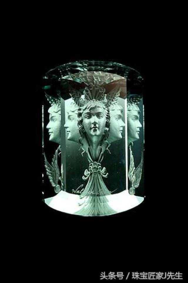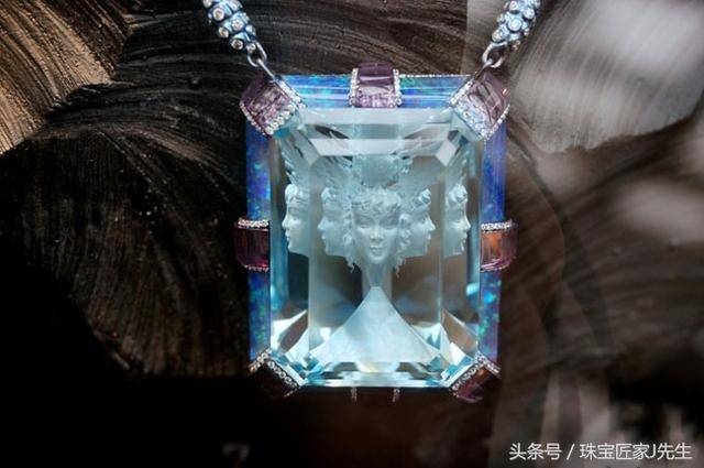 这块雕刻着希腊神话荷莱女神的海蓝宝石,名为《乾坤日夜浮》,以独创的“WallaceCut”工艺,这是一种融汇浮雕、阴雕及宝石切割技巧于一炉的五面倒影雕刻法,所形成的五面倒影,充分表达出女神一者多身的含意。