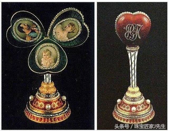 心形彩蛋打开是三个相框,构成了象征幸运与祝福的三叶草的形状,相框内分别是尼古拉二世,亚历山大·费多罗夫娜和他们的宝贝女儿大公爵夫人奥尔加。