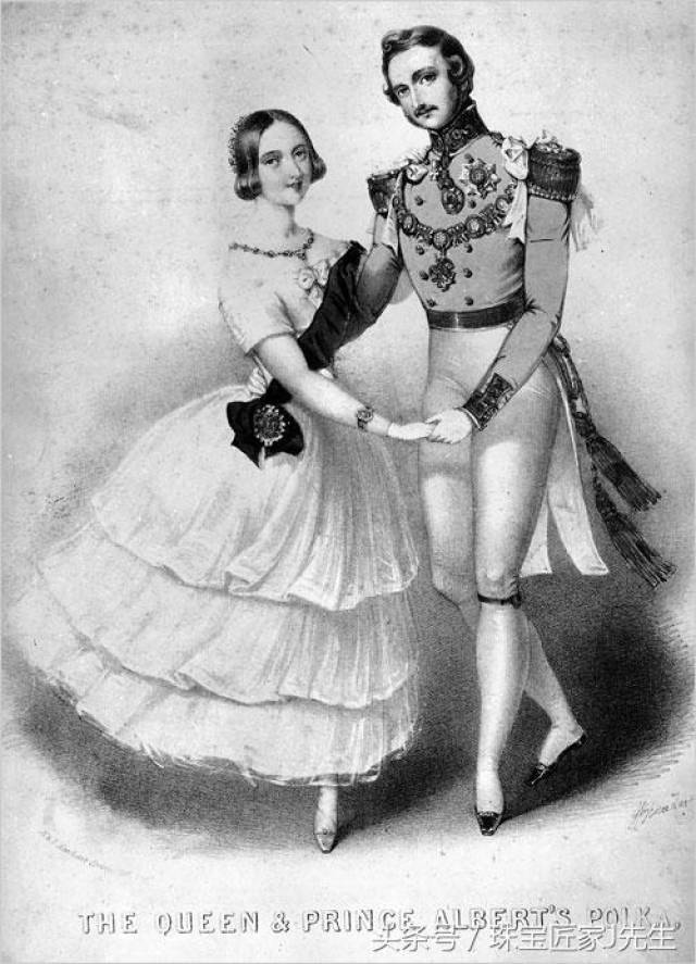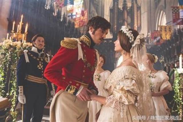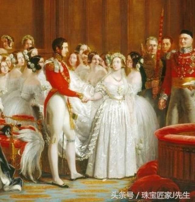 也只有如此美好的男子,才能让女王亲自向他求婚,婚礼上,维多利亚女王的白色婚纱更是开创了“婚纱必须是白色”的新纪元,顺便说一句,阿尔伯特也是个浪漫的人,他亲手给女王设计了胸前蓝色钻石别针,在婚礼的前一天送给女王,女王在结婚当天把钻石别针别在了婚纱胸前。