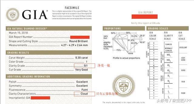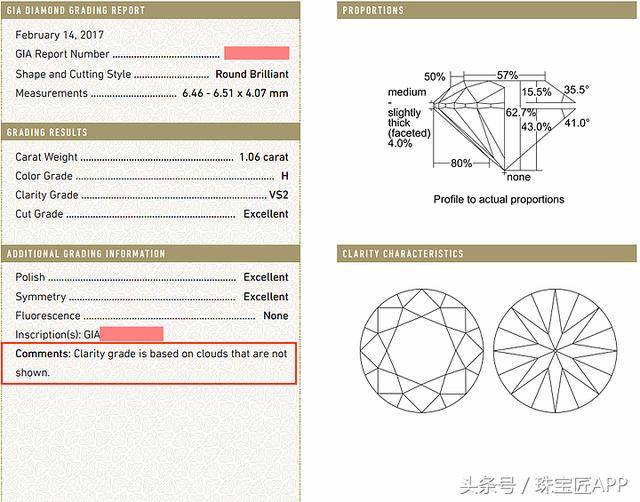 2、结合第一条,证书上还显示Clarity grade is based on clouds that are not shown。