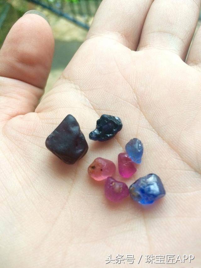 - 那边主要是砂矿,很多裸石都已经支离破碎,没有完整的晶形(刚玉六方晶系,桶状,横纹这也没有多大帮助)。很多宝石颜色看起来都一样,仪器不管用,光凭肉眼,很多时候还真的难以区分什么是什么。