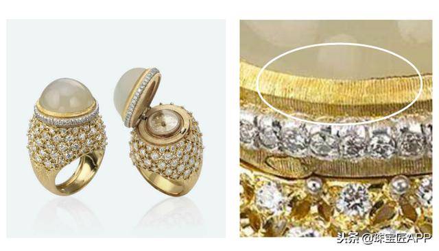 3、Rigato(边缘切割纹理):这是一种常见于首饰边缘的切割方式,工匠通过在金属表面刻画平行纹理,来凸显首饰的厚重感,细腻的纹理让珠宝首饰具备薄纱般朦胧的质感。