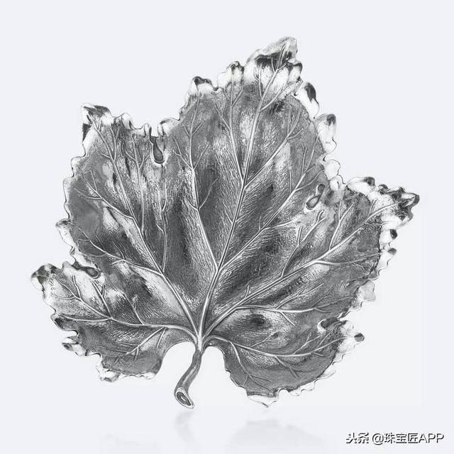 如这片银质枫叶,就采用了金属微雕工艺,在金属表面雕刻出了极其细腻的脉络,并运用表面质感、光泽的对比,使枫叶更有立体感,更加灵动。