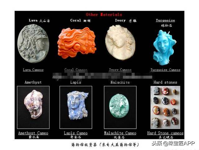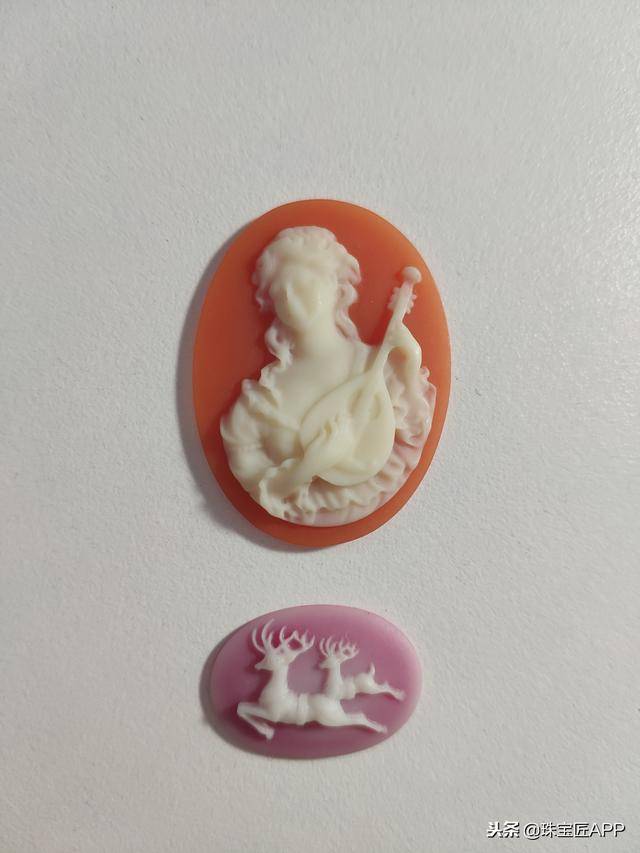 Cameo的材质可以是玛瑙、贝壳、火山岩、绿松石、珊瑚等,都可以作为Cameo的原材料,重点不在于材质,而是精致的浅浮雕。
