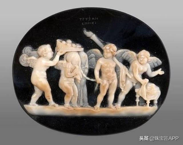 真正意义上的Cameo出现在公元前三世纪的古埃及,这时的工匠们,运用颜色层次分明的缟玛瑙进行创作,通过娴熟的雕刻机巧将表面浅色部分精心雕琢而去,以底部深色的玛瑙为背景,形成鲜明的色彩对比。
