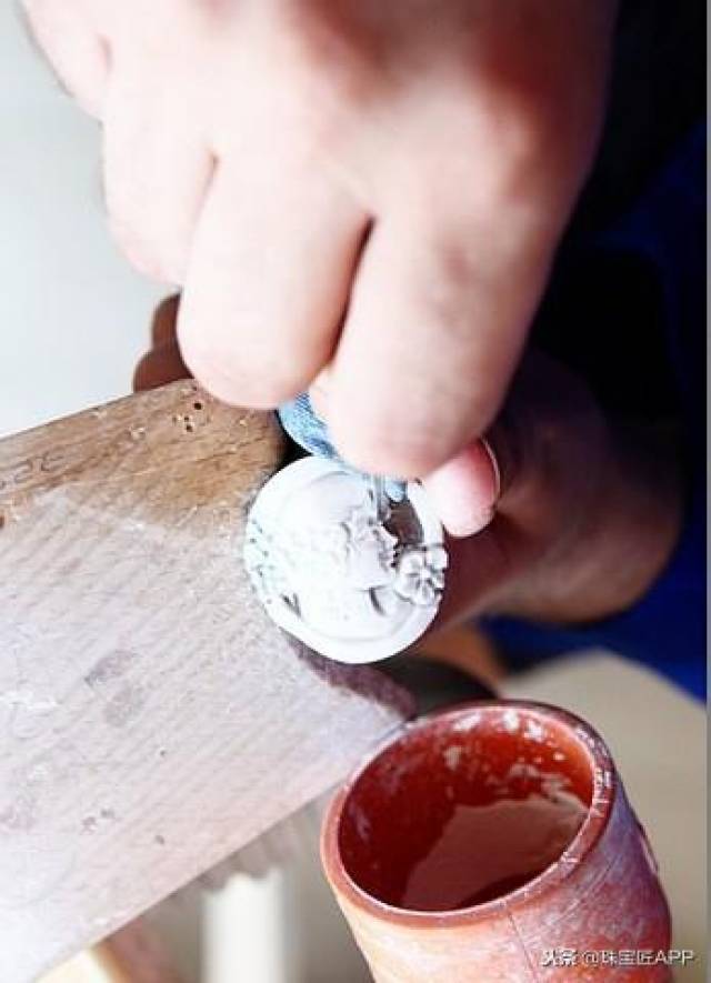 雕刻完成后,要对Cameo进行清洗,并镶嵌底座;