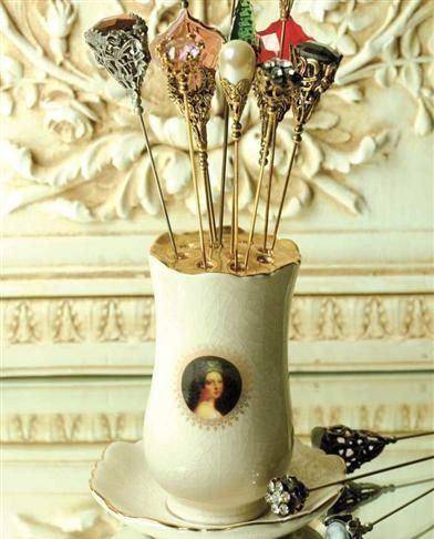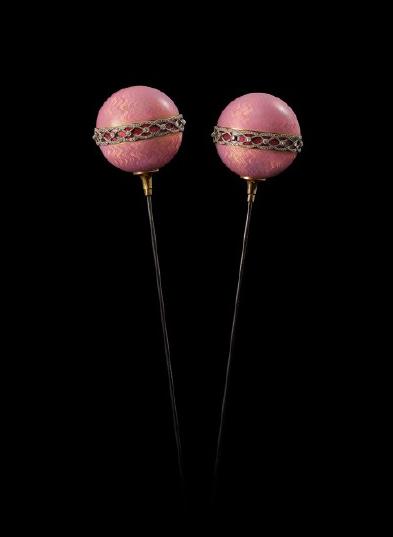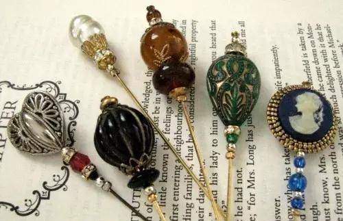 除此之外,设计师们还会根据当时流行的风格,不停的变换帽针的样式,有的帽针顶端还被设计成可翻盖的样式,将小镜子、香膏等物品放入其中,力求与众不同。