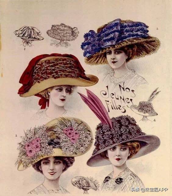 1914年,第一次世界大战爆发,人们对于奢侈华丽之风的追求也逐渐趋于理性。帽子开始从宽檐大帽向简约、精巧的样式转变,15-30cm的帽针已经不再流行,5-10cm的小帽针成为了主流。