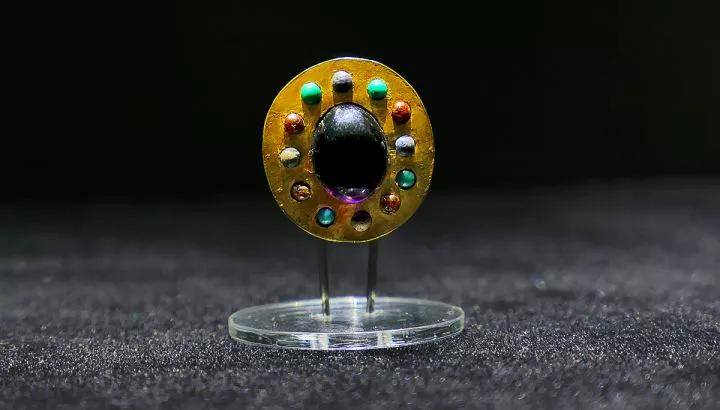 下面这条在1957年陕西省西安市李静训墓中出土的项链上,就镶嵌一块长达3.1厘米、极为罕见的青金石,这块青金石很有可能就是来自阿富汗地区。