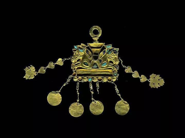 双马形吊坠 公元25-50年 这种背对背的动物造型,可能源于古代波斯