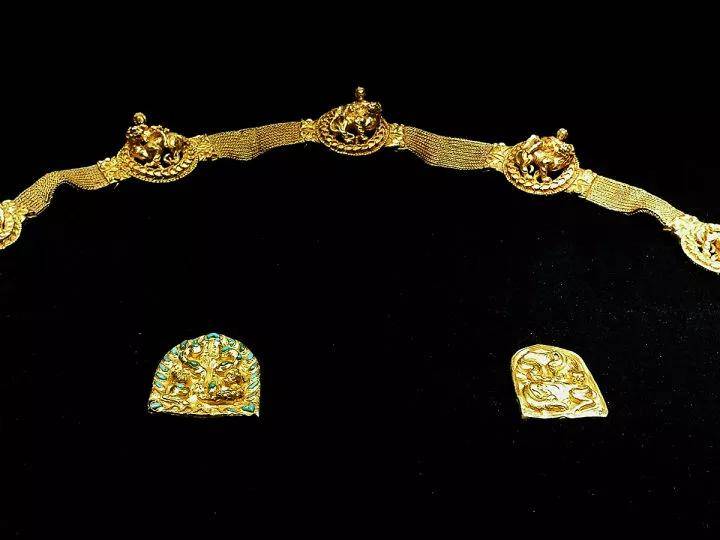 腰带 8条金带(每条金带有9股金链)和9块高浮雕圆形金牌饰连缀而成