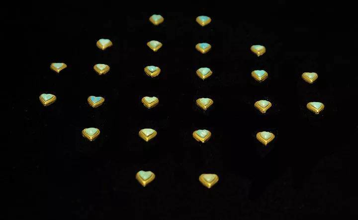 组合饰公元一世纪衣物饰件,嵌心形绿松石