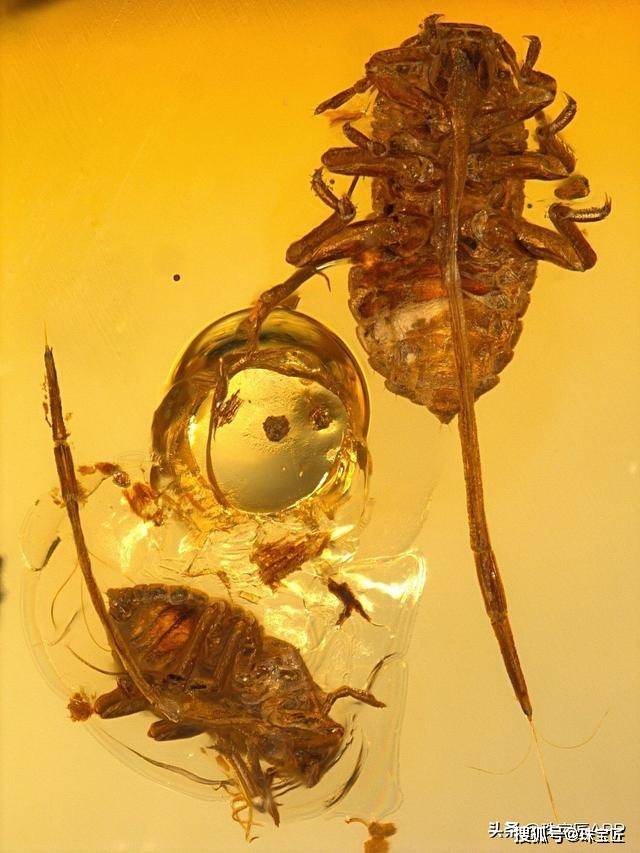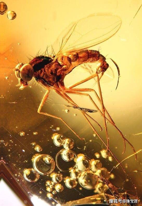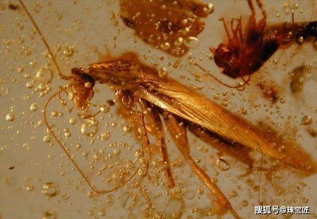 4、临终前的叹气:辨别天然虫珀还可以观察虫子周围的小气泡。