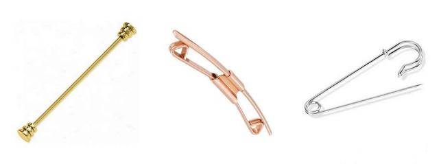 除了这种样式简单的单根针式领针,还有一种样式与别针极为相似的别针式领针。