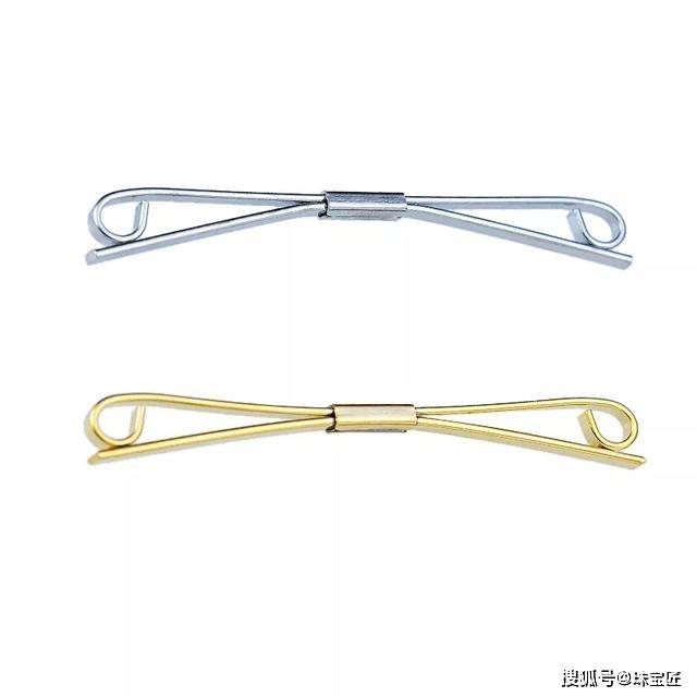 夹式领针通常是由两条金属条和固定装置所组成,其中的一条金属条可以轻轻掰动,将领子夹住。