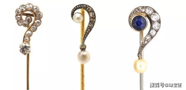 和所有珠宝的演化史一样,领针的样式也是从简单演变得华丽多样,出现了马蹄铁、问号等造型的领针。