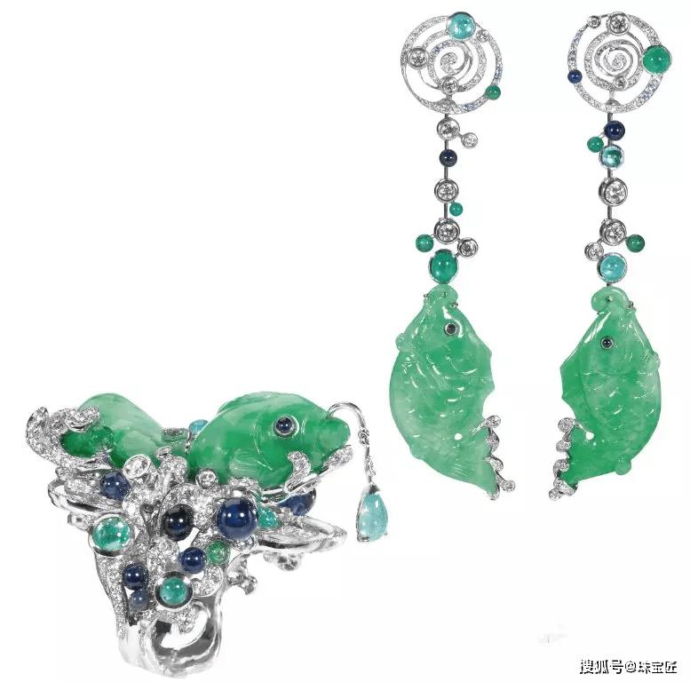 而国际珠宝大牌Dior则选用承载了中国上千年文化底蕴的翡翠,来还原鱼的造型。
