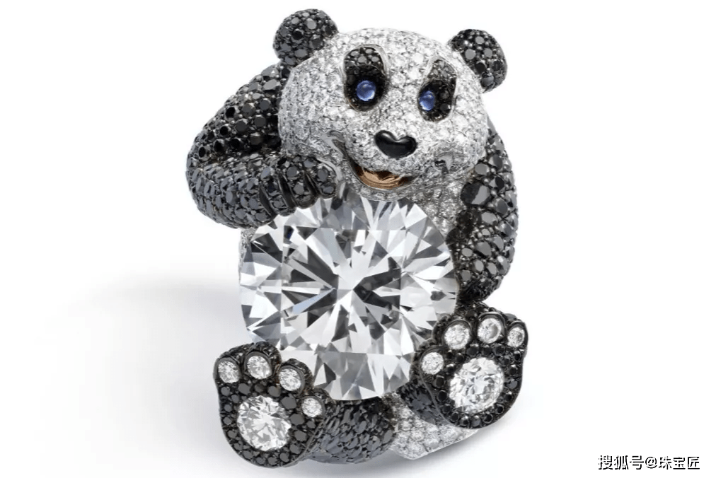 萧邦这只憨态可掬的大熊猫,怀中抱着一颗重约12ct的巨型圆钻,奢华至极。
