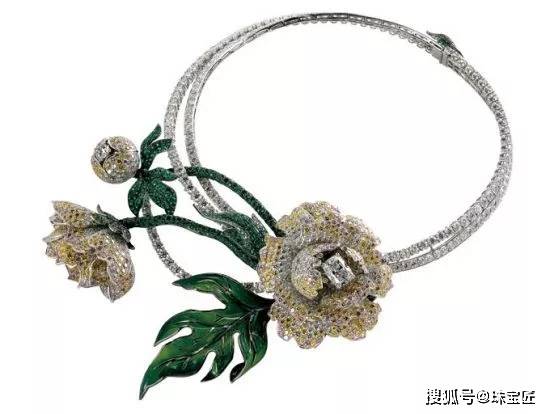 相对于梵克雅宝家艳丽的牡丹花,宝诗龙的这款牡丹项链虽然也是满钻设计,但在配色上更加含蓄内敛,别有一种国画的清幽之感。