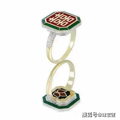 写有“囍”字的金质戒指和胸针,不用多说,中国味满满的,甚至耳边自带唢呐的bgm。