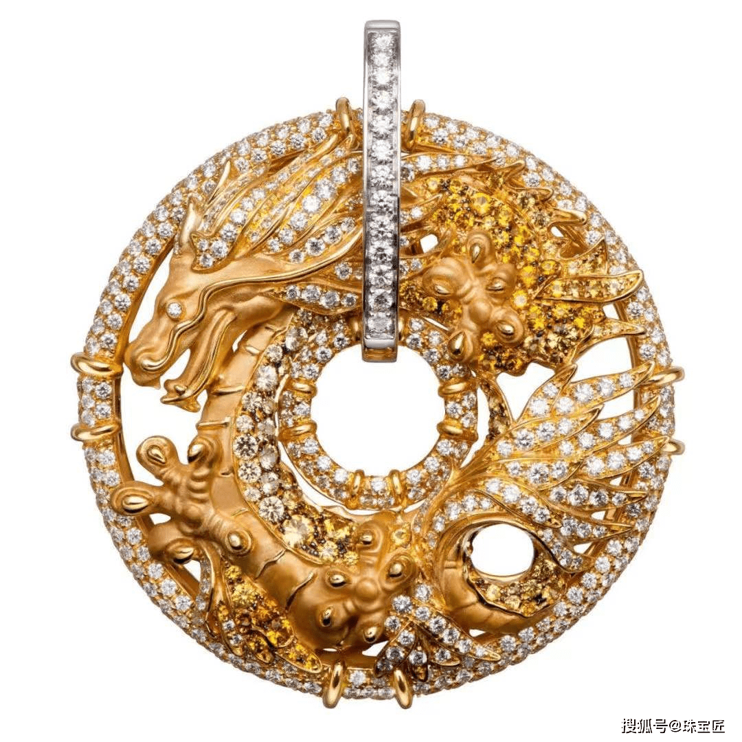 在西方,龙的形象更像长翅膀的恐龙,不过在Carrera y Carrera的这款设计中,设计师通过特殊的宝石切割、金雕工艺,呈现了五爪、鳞身、蛇颈、鹿角的龙形象,妥妥的是传统中国龙。