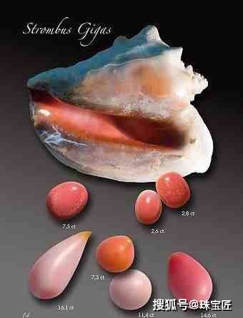 海螺珍珠也叫海螺珠,英文翻译名孔克珠(Conch Pearls)这种珍珠的独特之处在于,在其光洁的表面下蕴含着某种独具一格的、鲜亮的火焰纹。