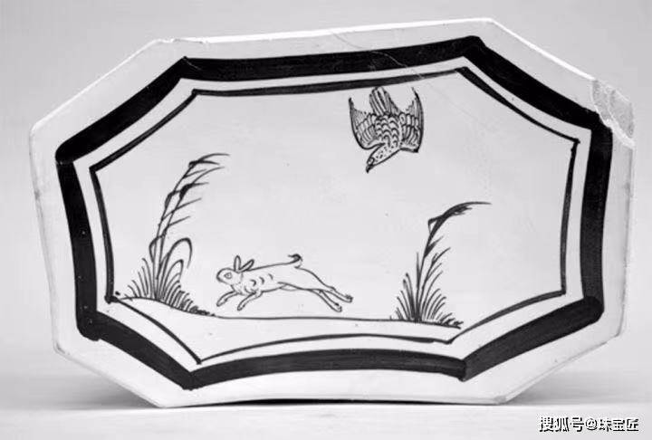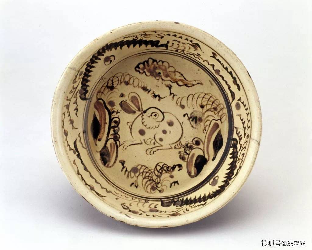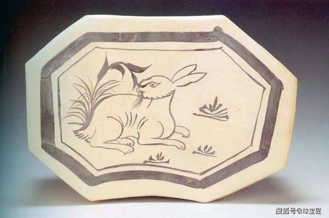 宋代的磁州窑是民间最大的窑场,这里出产的瓷器、碗、盘上均装饰有样式各异的兔子纹样。