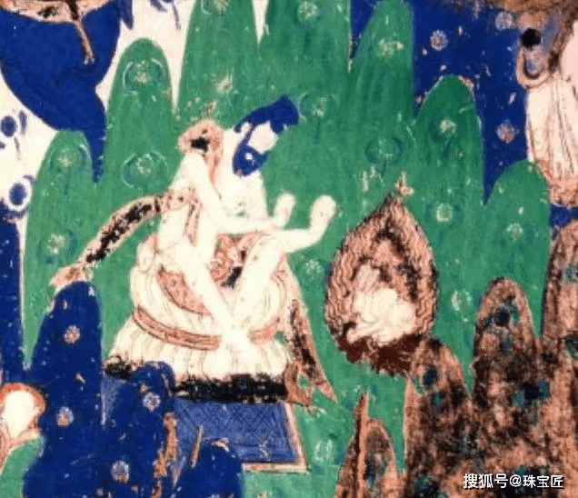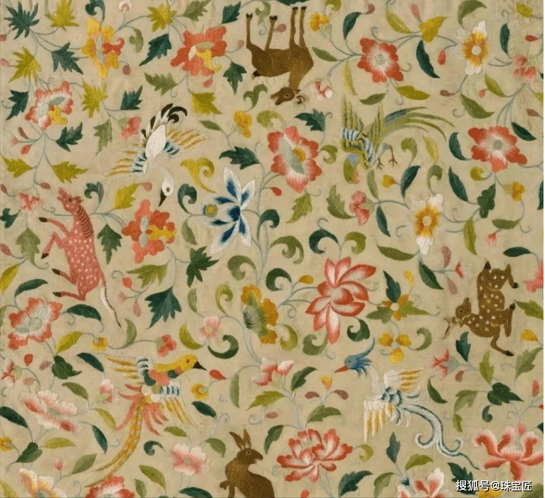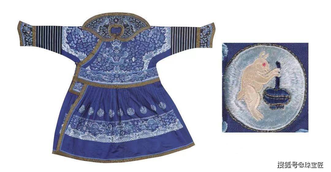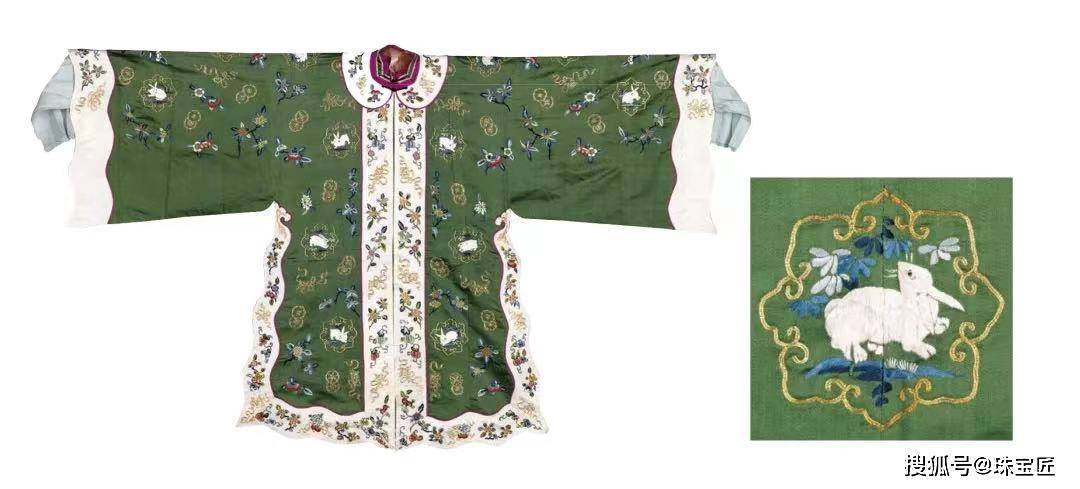 据考证,这种纹样可能是佛教中“兔本生”故事的演化版本,曾出现于永乐宫壁画上,后来成为服饰上最常使用的纹样之一。