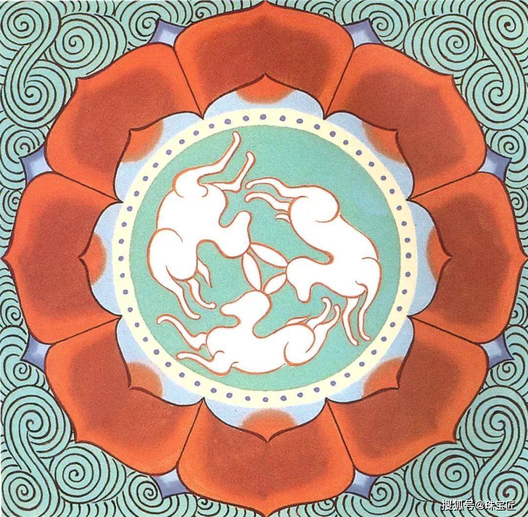 除了玉兔捣药这一经典的纹样之外,三兔莲花藻井纹样也十分常见。