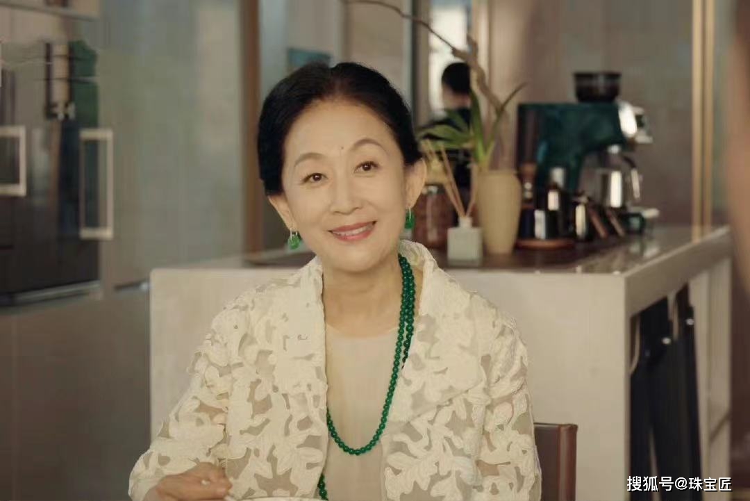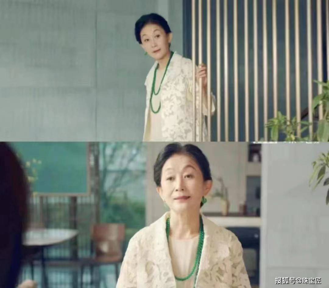 虽然,剧中付闻樱佩戴的翡翠首饰并不多,但一条满绿的收藏级翡翠珠链,就足以压倒全场。