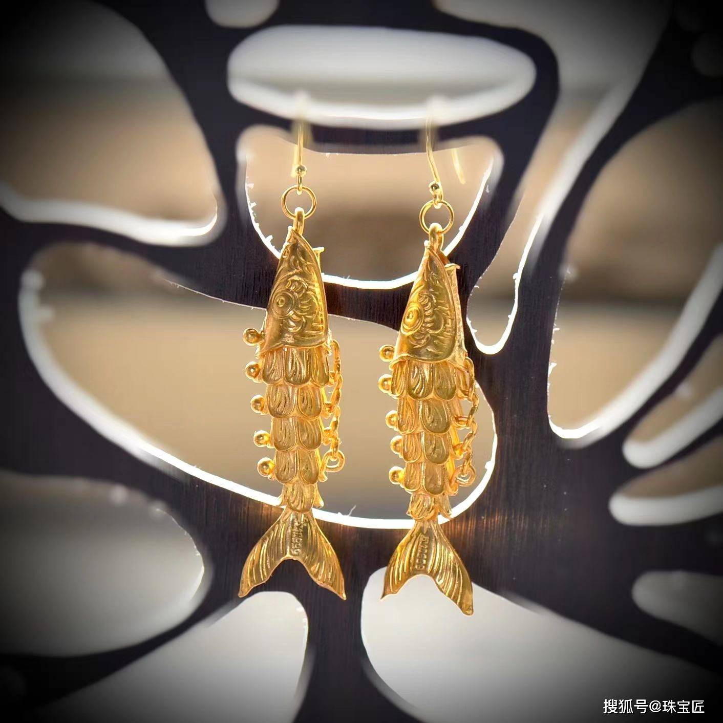【鱼游春水】足银镀金锦鲤鱼形耳饰 珠宝匠在售