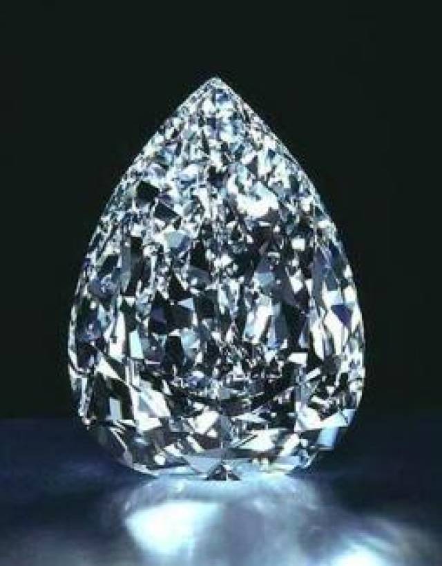 原身是一颗晶体近乎完美,重777克拉的毛钻,为了最大限度地展现该钻的光彩,世界顶级钻石切割师们把这颗毛钻的自身重量切割掉75%(小编:心痛!败家!),最后加工成了一颗203.04克拉,火彩耀眼的梨形钻。