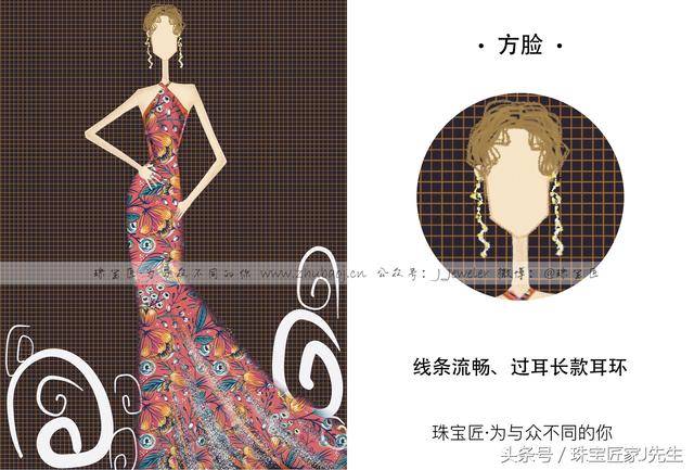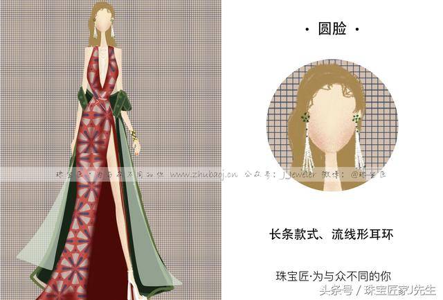瘦长的脸型适合弧形或横向设计的耳饰,如花形、心形等。可选择造型夸张的款式,长度则以贴耳式短坠或耳钉为宜,增强脸部的生动感。