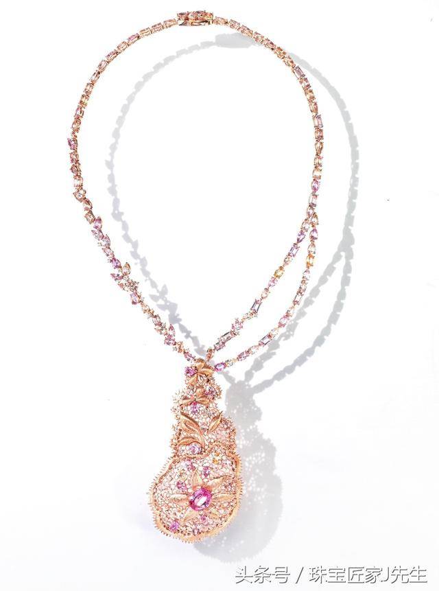 ↑↑↑Harry Winston海瑞温斯顿Sunset系列极稀莲花刚玉钻石项链
