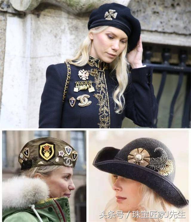 这个时候就可以使用胸针来点缀自己的帽子,让自己的帽子与众不同,整个造型更有亮点!