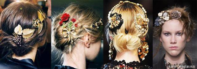 把胸针别在挽起的发髻上可以说并不少见,但也是十分考验功力的一种佩戴方法。