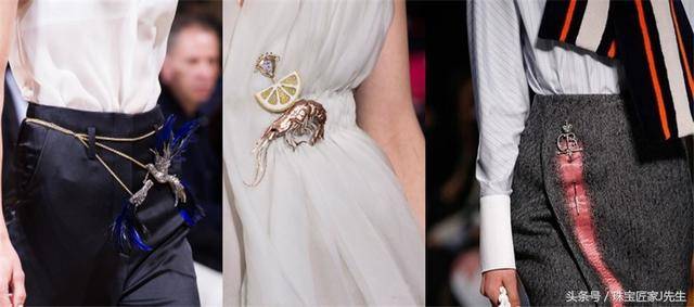 当胸针出现在腰带的位置时,它就成为了整身服装的主角,呈现出一份别致美感。