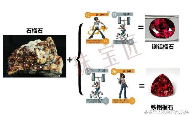 镁铝榴石和铁铝榴石经常混合双打,称为铁镁铝榴石,含铁越多,颜色越偏暗红。
