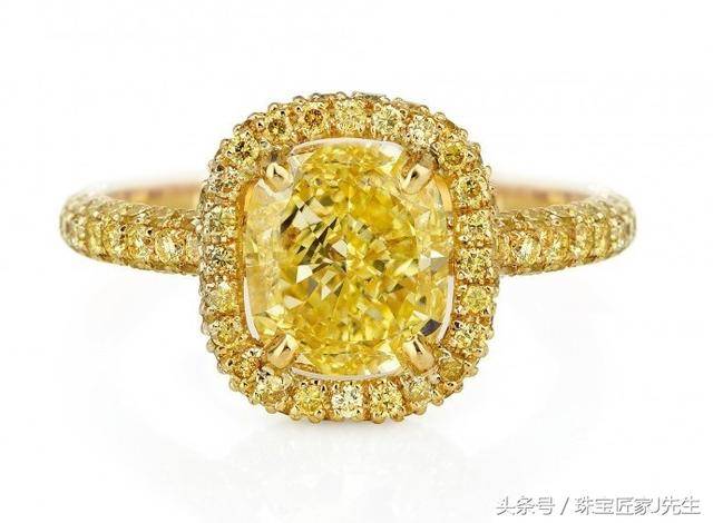 通常,颜色较淡的黄钻会在镶嵌的时候采用垫底的方法(用K金或黄金封底色),来让黄钻的颜色提升至少两个级别。