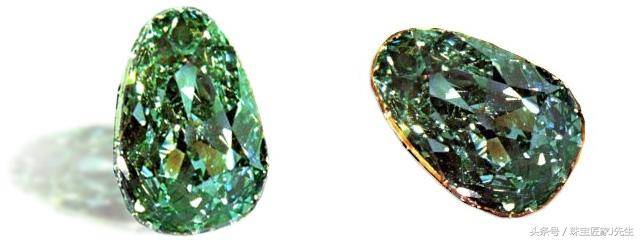 绿钻极为罕见,它的绿色往往只分布在最表面的那一小层上,稍加切磨就被去掉了,通体浓绿的绿钻简直是万里挑一。