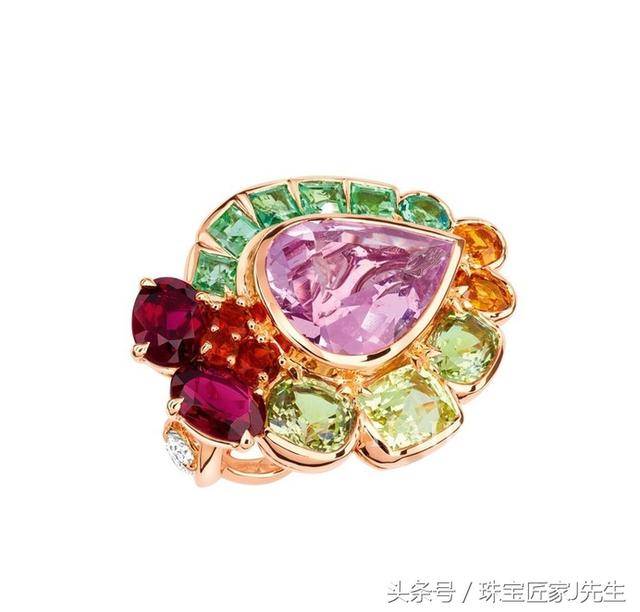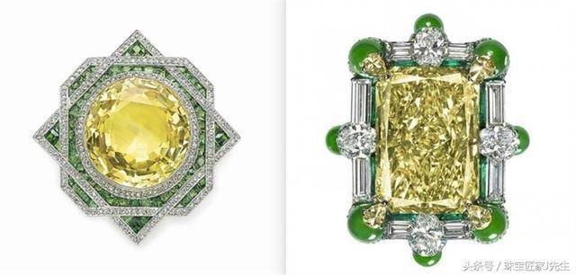 除了常见的补色,设计师也经常会神来一笔,给彩钻围上各种别的颜色。有时候很优雅: