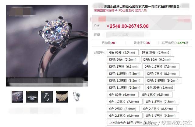 而且从商品分类信息来看,可以看出莫桑钻的选购条件,和钻石一样,也是遵从4C标准。