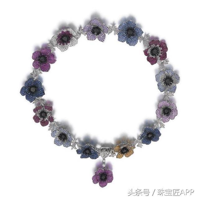 大胆明丽的颜色组合总是能让人震撼,但清新分明的颜色同样也能出彩。除了红蓝宝石和祖母绿等名贵品种之外,他同样使用彩色蓝宝石、卢比来碧玺、石榴石等其他宝石。