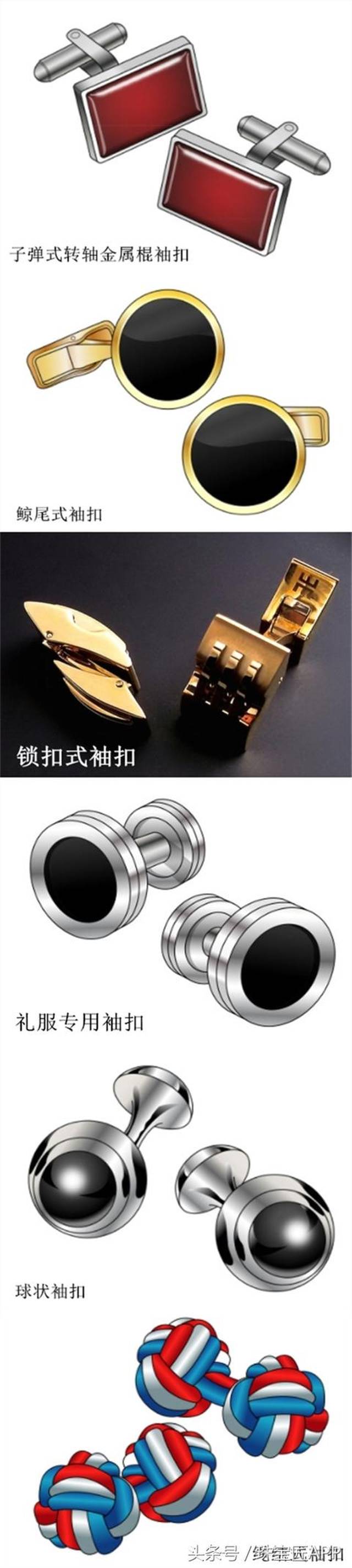 形制方面,袖扣有很多不同的类型,最为古老的就是链条式袖扣,衣品爆好的查尔斯王子就曾佩戴过,除此之外,还有子弹式转轴金属棍袖扣、鲸尾式袖扣、礼服专用袖扣(简称“一个人戴不上袖扣”)、球状袖扣、锁扣式袖扣、绳结式袖扣。