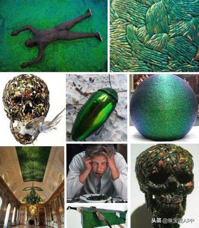 艺术家们尤其热爱这种自带渐变色效果的材料,比利时艺术家Jan Fabre就极其偏爱吉丁虫,他以吉丁虫的鞘翅创作了一系列的艺术作品。