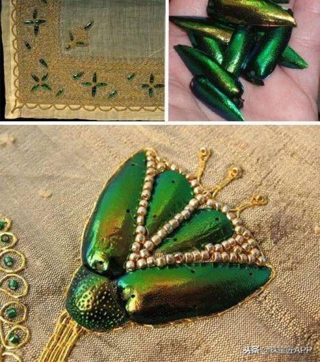 这些金属色鞘翅不仅被制成标本、首饰、挂件,还作为贴片装饰在衣物上。