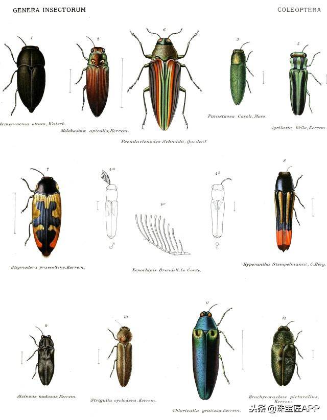 准确的说,这种被拿来做首饰的昆虫,叫做吉丁虫,是鞘翅目吉丁虫科昆虫的总称,已知约有1万6000种。