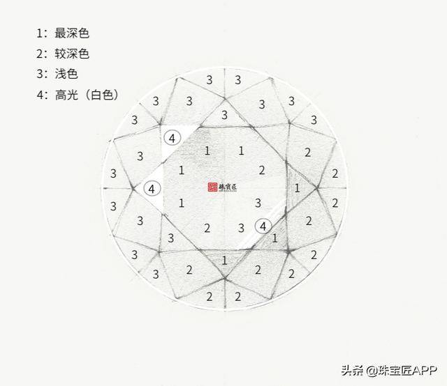 虽然是简易画法,但基础还是不可少。要想给宝石上色,就需要了解宝石的光影结构。