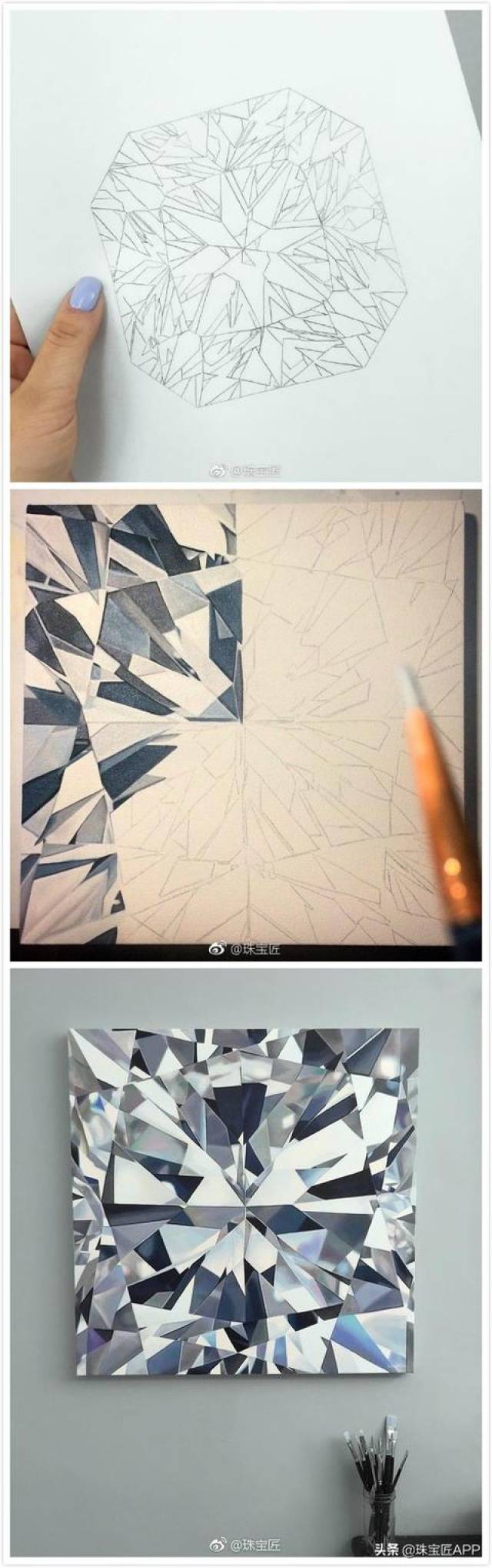 宝石的光影结构是十分复杂的,如果要如实表现,大概要把宝石分成数百个格子,用深深浅浅不同颜色填满格子,才能画出一幅非常逼真的宝石手绘。